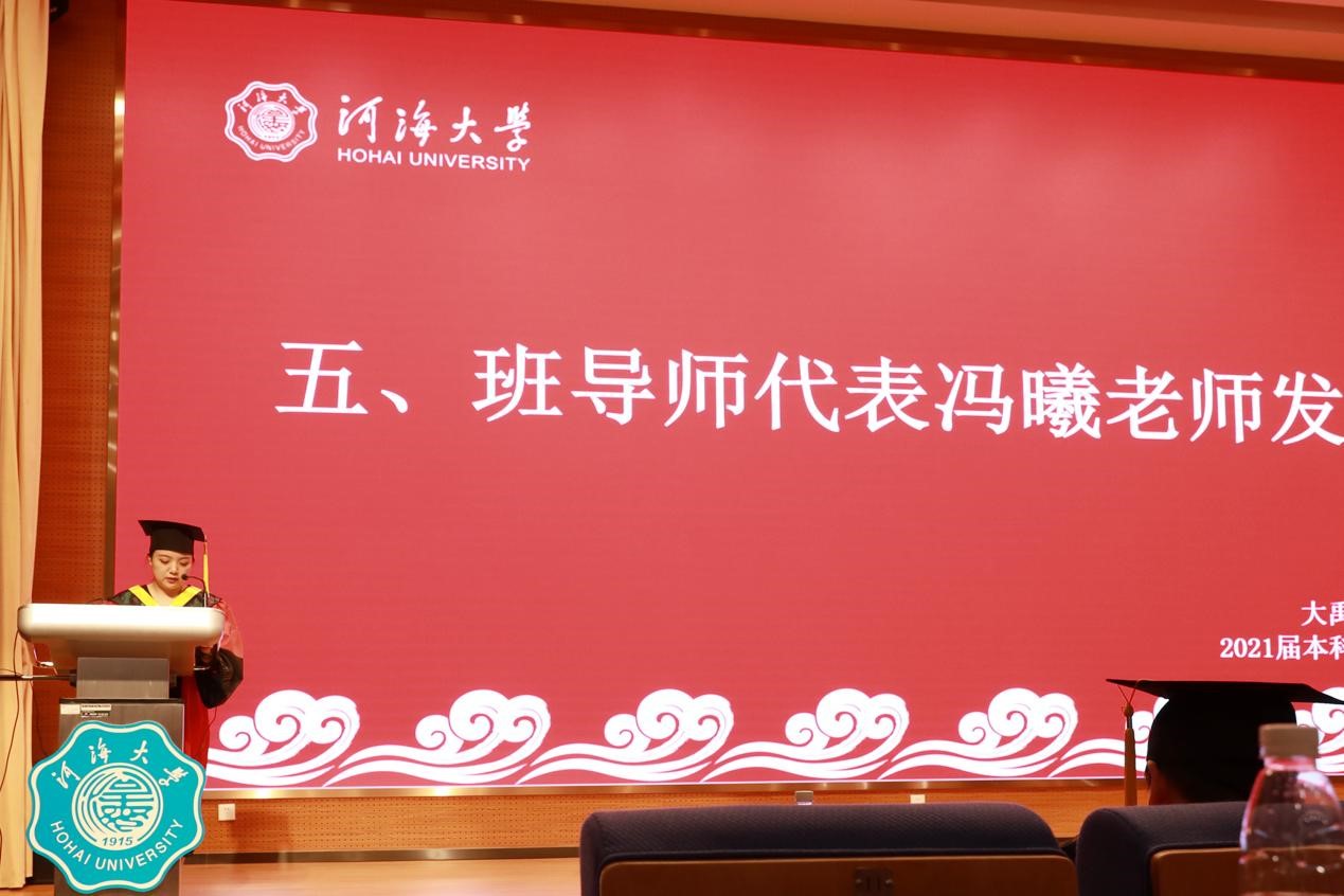 伟德国际1946bv官网2017级港航班班导师冯曦老师作为班导师代表为伟德国际1946bv官网2021届本科毕业生送上了祝福。君子豹变,其文蔚也。你们需要通过解决一件一件具体的矛盾来建立自己的人生,并学会从每一件矛盾化解的过程中,感到知足。今日再顾大禹,不羡其定九州、称王号夏,但崇其栉风沐雨,躬亲劳作,公而忘私,济四方贫弱疾苦之魂。望各位今后无论走上哪条道路,从事任何行业,都能保留水利人的本色:勤德兼备、戒骄戒躁、脚踏实地。
